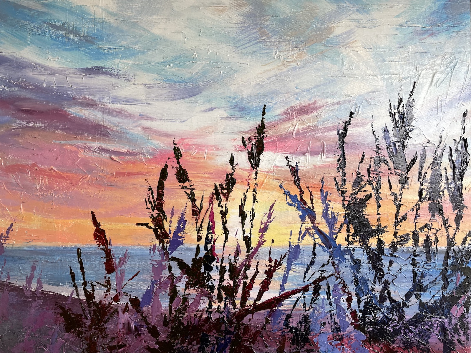Bold, expressive, full of movement, shape and texture. I have a passion for rich colour and use this to express the joy of living on the coast.
